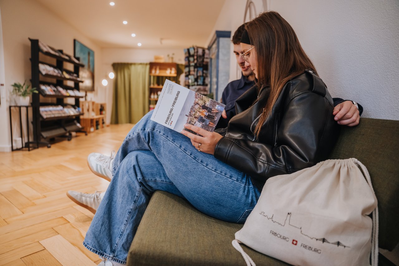 Zudem bietet der Info Point Bourg eine Auswahl an regionalen und handwerklichen Produkten. Er hebt das lokale Know-how hervor und ist ein schönes Schaufenster für die Kreativität des Freiburger Landes.