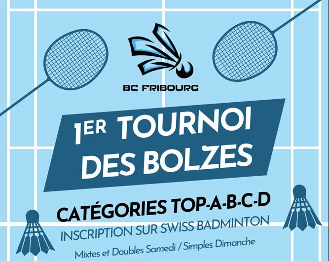 Das Tournoi des Bolzes ist ein offizielles Turnier, bei dem lizenzierte Badmintonspieler aus der ganzen Schweiz, sowohl Junioren als auch Erwachsene, gegeneinander antreten.Der Anlass in Freiburg bietet Badminton auf Wettkampfniveau in einer sportlichen und zugleich freundlichen Atmosphäre. Das Publikum ist herzlich eingeladen, spannende Matches zu erleben, die Athleten anzufeuern und die dynamische Atmosphäre dieses wichtigen Events im Badminton in Freiburg zu geniessen.