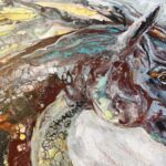 Seit jeher arbeitet sie mit Papier, Farbe und Tusche. Besonders gern verwendet sie fliessende Acryltechnik, bei der Materialmischungen, präzise Arbeitsweise und die Suche nach Texturen zu sensiblen abstrakten Kompositionen führen. Zwischen Farben, Strukturen und originellen grafischen Formen erinnern ihre Werke mitunter an traumhafte, vielfarbige Landschaften.
