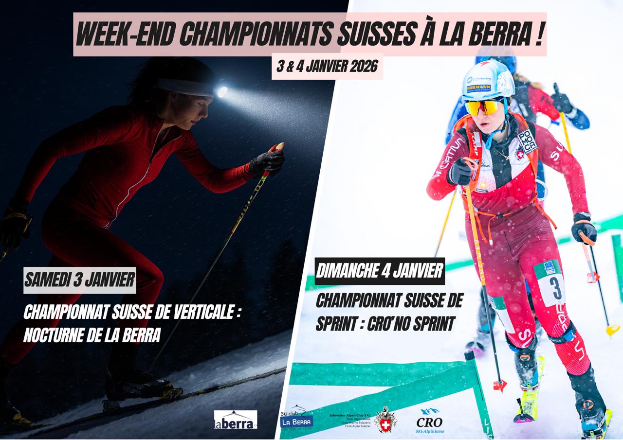 La Berra ist am 3. und 4. Januar 2026 Austragungsort der Schweizer Meisterschaften im Skibergsteigen mit der Nocturne de la Berra (Vertikale) und dem CRO’no’Sprint (Sprint). Entdecken Sie das vollständige Programm des Wochenendes.