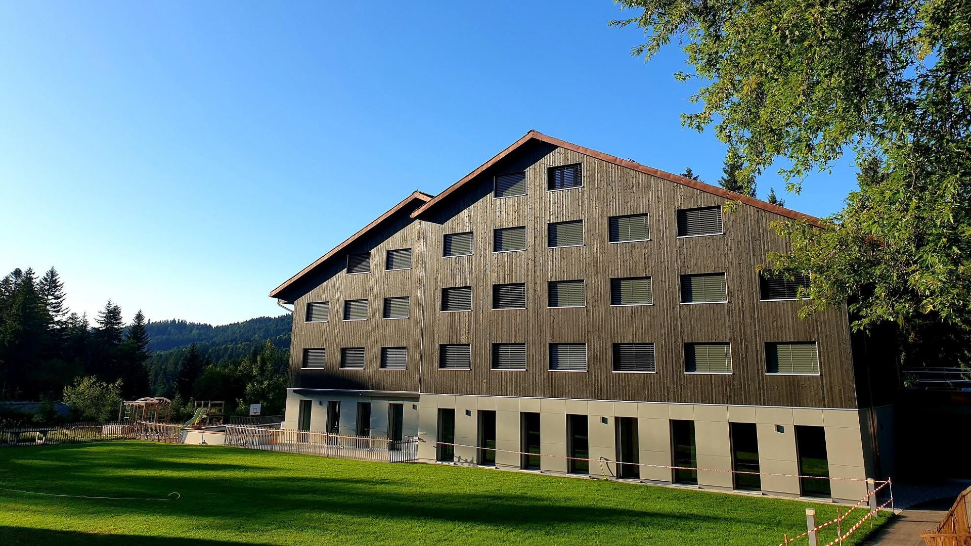 Das Gebäude wurde mithilfe modernster Isolationstechniken renoviert und das Dach ist fast vollständig mit Photovoltaikmodulen bedeckt. Es verfügt über 34 Zimmer mit 86 Betten.