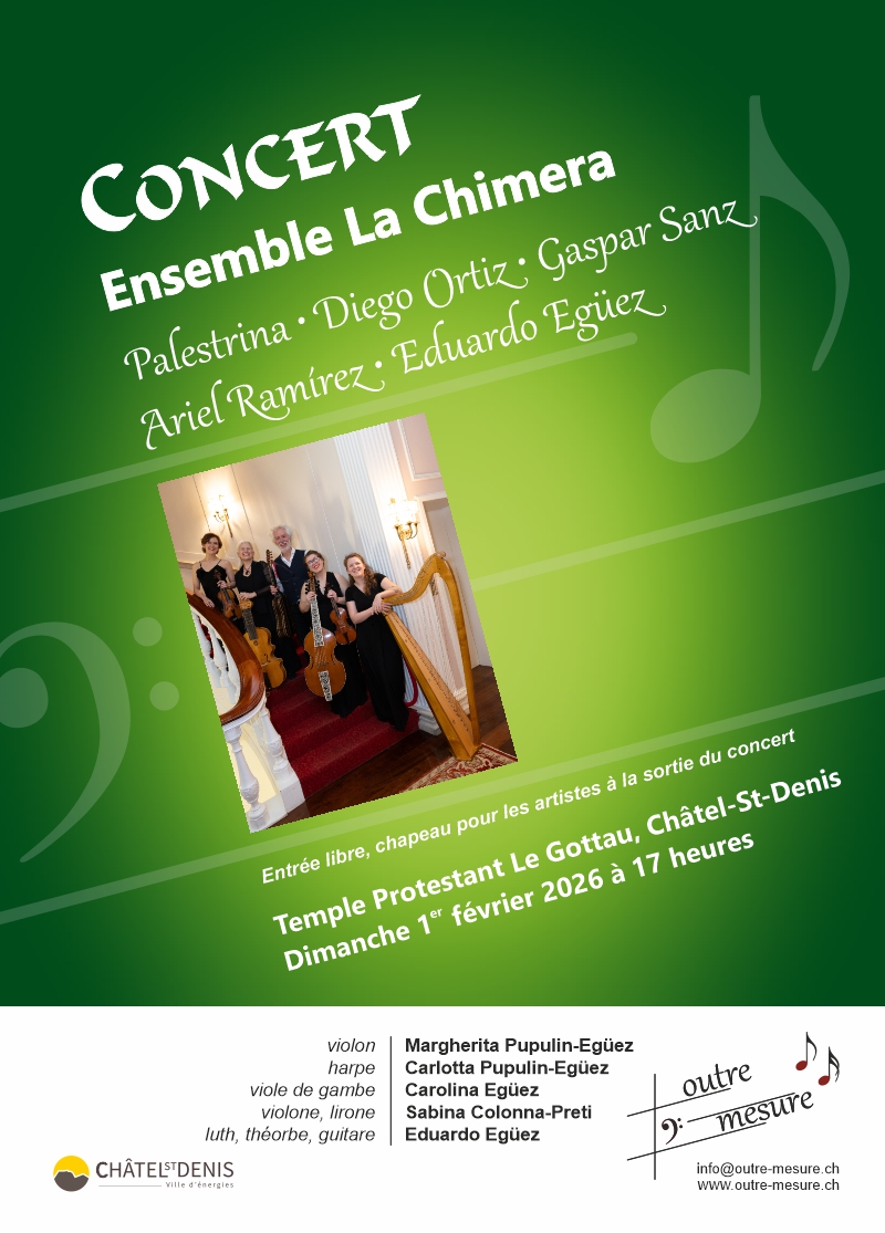 Unter dem Namen La Chimera wird der renommierte Lautenspieler und Gitarrist Eduardo Egüez gemeinsam mit seiner Familie ein seltenes und mit Spannung erwartetes musikalisches Ereignis präsentieren. Er wird begleitet von seiner Frau Sabina Colonna-Preti (Violone und Lirone), ihren Töchtern Carlotta Pupulin-Egüez (Harfe) und Margherita Pupulin-Egüez (Violine) sowie Carolina Egüez (Viola da gamba).
