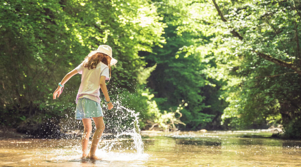 Erleben Sie ein einzigartiges Barfuss-Erlebnis: Laufen Sie über Sand, Moos, durch Flüsse und Schlamm in einem überraschenden Garten voller Pflanzen und Bäume aus aller Welt und entdecken Sie vergessene Empfindungen wieder.