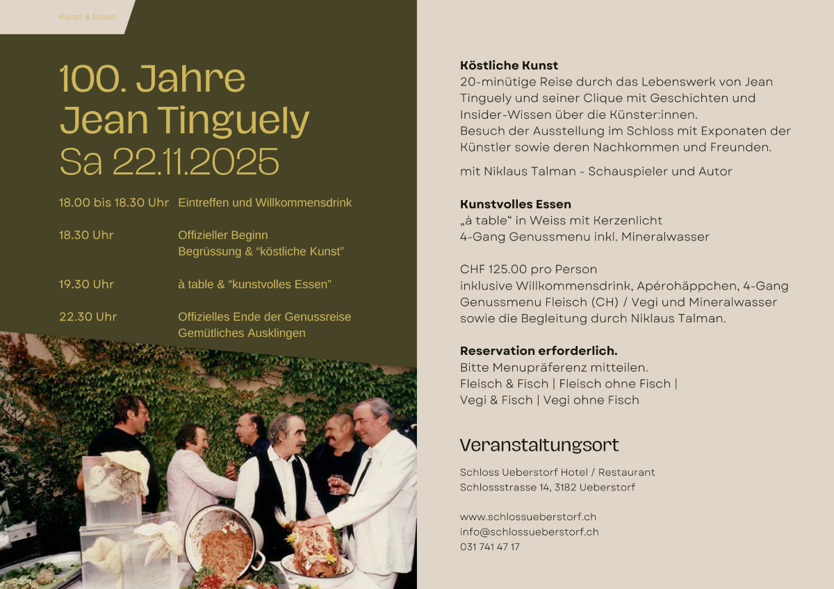 20-minütige Reise durch das Lebenswerk von Jean Tinguely und seiner Clique mit Geschichten und Insider-Wissen über die Künstler:innen. Besuch der Ausstellung mit Exponaten der Künstler sowie deren Nachkommen und Freuden.