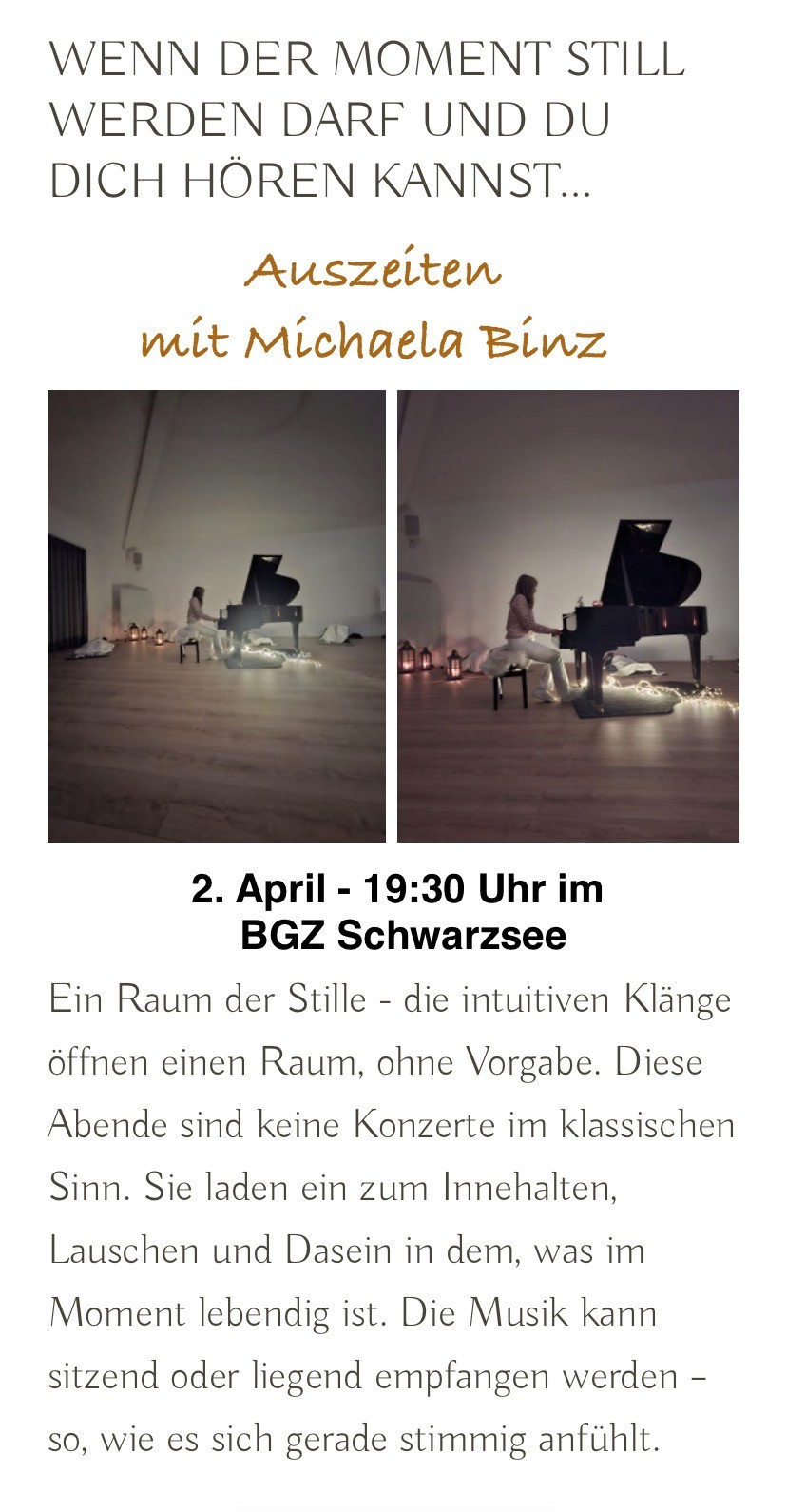 AUSZEITEN - meditative Klavierklänge mit Michaela Binz