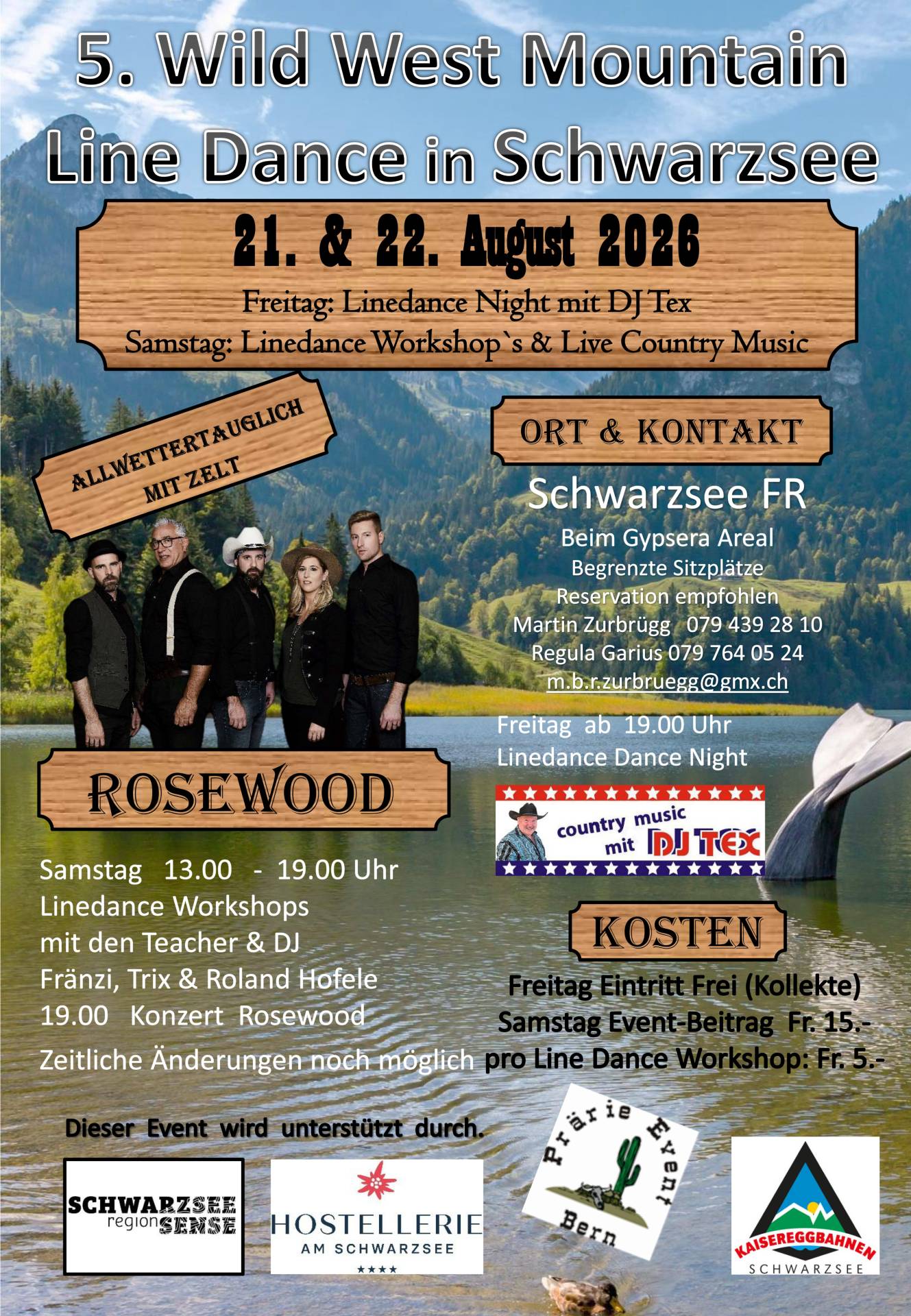 Der Line Dance Event mit Live Country Music findet beim Gypsera Areal in Schwarzsee statt.