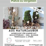 Komm mit deiner Mami, deinem Papi, deinem Gotti oder Getti zu uns und werdet gemeinsam kreativ! Mit Naturmaterialien, Farben und etwas Glitzer gestaltest du deinen ganz persönlichen Engel oder Wichtel. Einzigartig, fantasievoll und mit viel Herz. Der Kurs wird geleitet von Claudia, Inhaberin von Bluemegflüschter. Am Ende feiern wir eine kleine Vernissage, bei dem eure Kunstwerke glänzen dürfen. Und natürlich wartet ein feiner Zvieri auf euch.