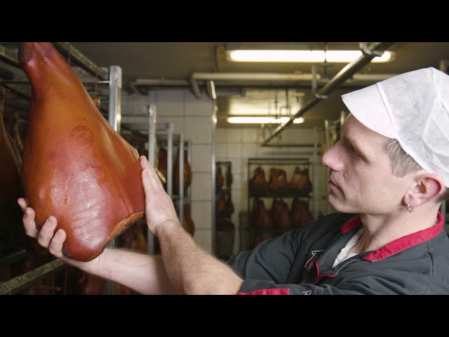 Once the ham is salted, cleaned, ripened and finally smoked, it is sent to the warehouse, where it stays for a few more days. In all, more than ten weeks are necessary to produce this ham with the special taste.