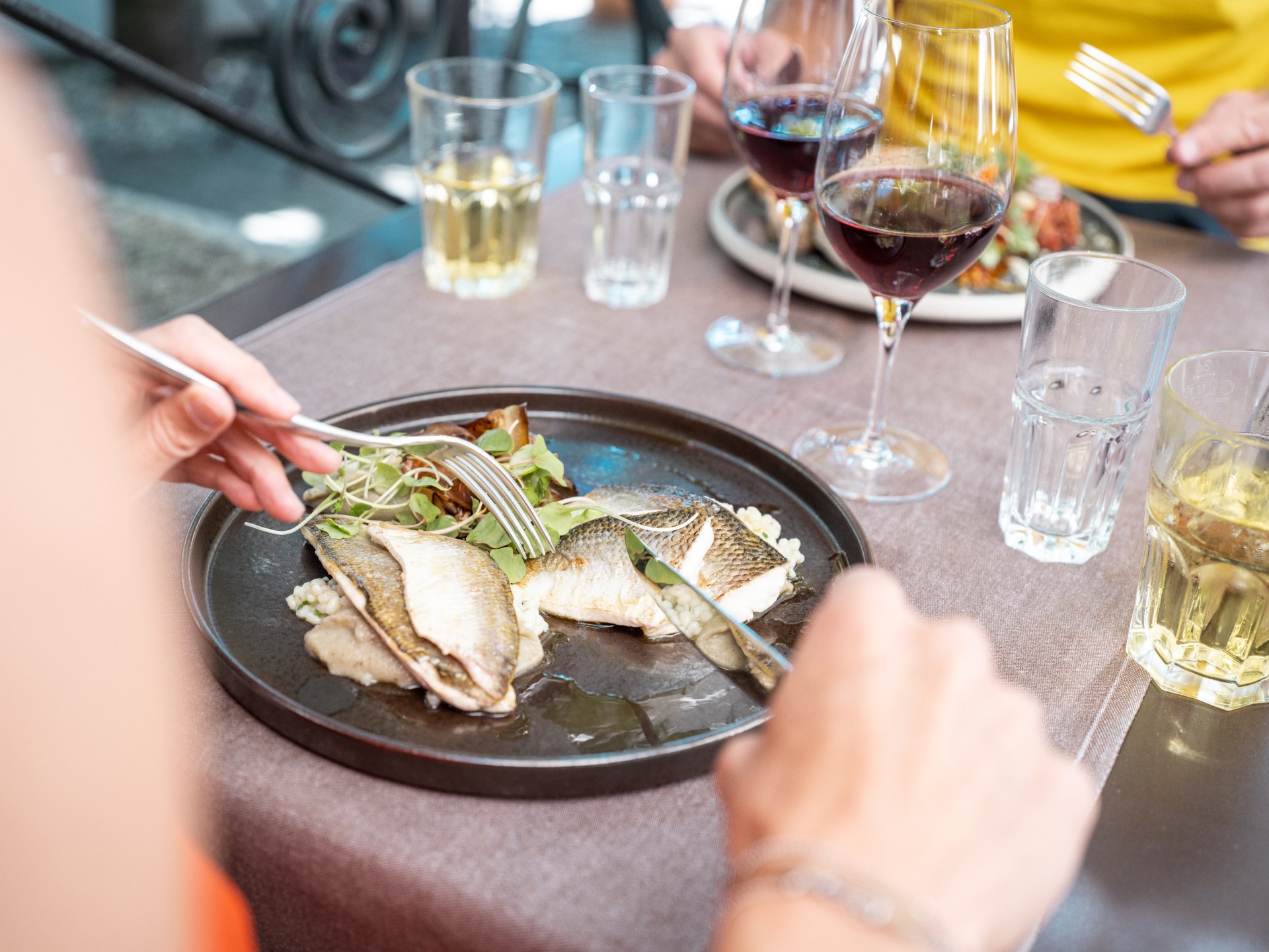 Fish, caught daily, are prepared with care in the restaurants of the area.