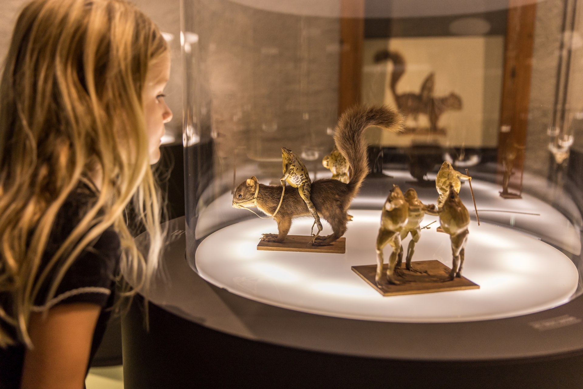 The frogs were created in the 19th century by François Perrier, a former officer at the Vatican. He sought to recreate typical scenes from everyday life in Estavayer-le-Lac. The frog vignettes include an electoral banquet, a class of schoolchildren, a family meal, soldiers on exercise, and a lawyer sitting at his desk. François Perrier painstakingly reproduced the furniture and fittings of the day in miniature, which gives this collection its unique character. His work is a masterpiece of taxidermy, a fascinating example of anthropomorphic art, as well as a curiosity of social history.