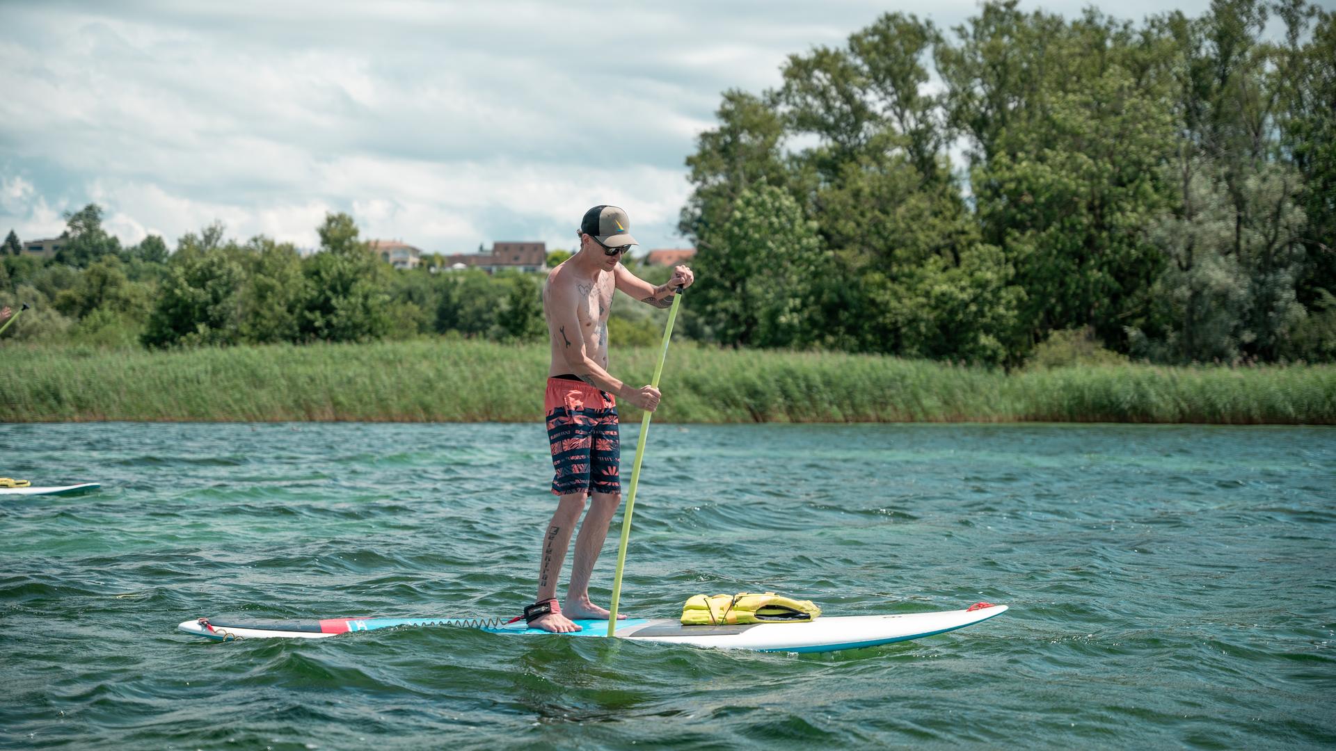Stand up paddling is a great way to experience the majestic Alpine scenery of Schwarzsee and the sun-drenched vineyards of Vully on Lake Murten. Or you could paddle out to the Ogoz Island on Lake Gruyère. You can hire all the kit you need at lots of outlets around the region. There is also a great SUP tour that starts in Fribourg’s Old Town and follows the Sarine river to Lake Schiffenen, where you can drop off the SUP and return by train. Stand-up paddleboarding is also popular on the southern shore of Lake Neuchâtel. There are self-service boxes on the beach at Portalban where you can hire the equipment you need.
