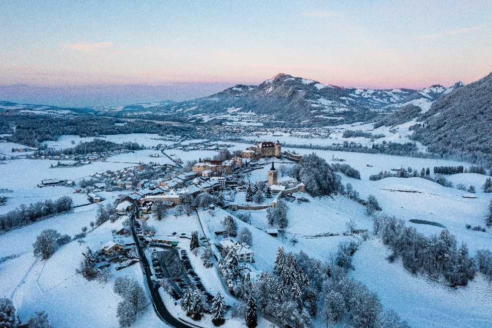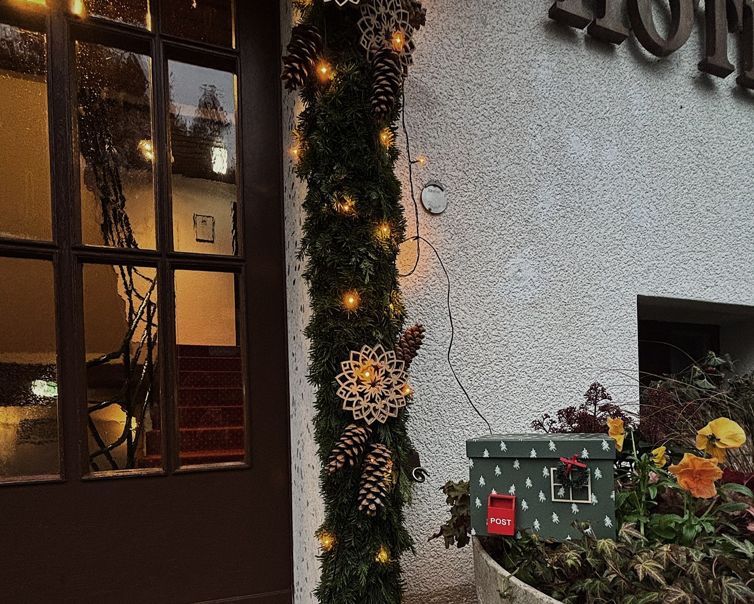 Every day in December from 12:00 p.m. to 5:00 p.m. (except Monday, December 15, and Tuesdays, December 9 and 16), a pretty Christmas box can be found in front of the door of the Hôtel de Gruyères.