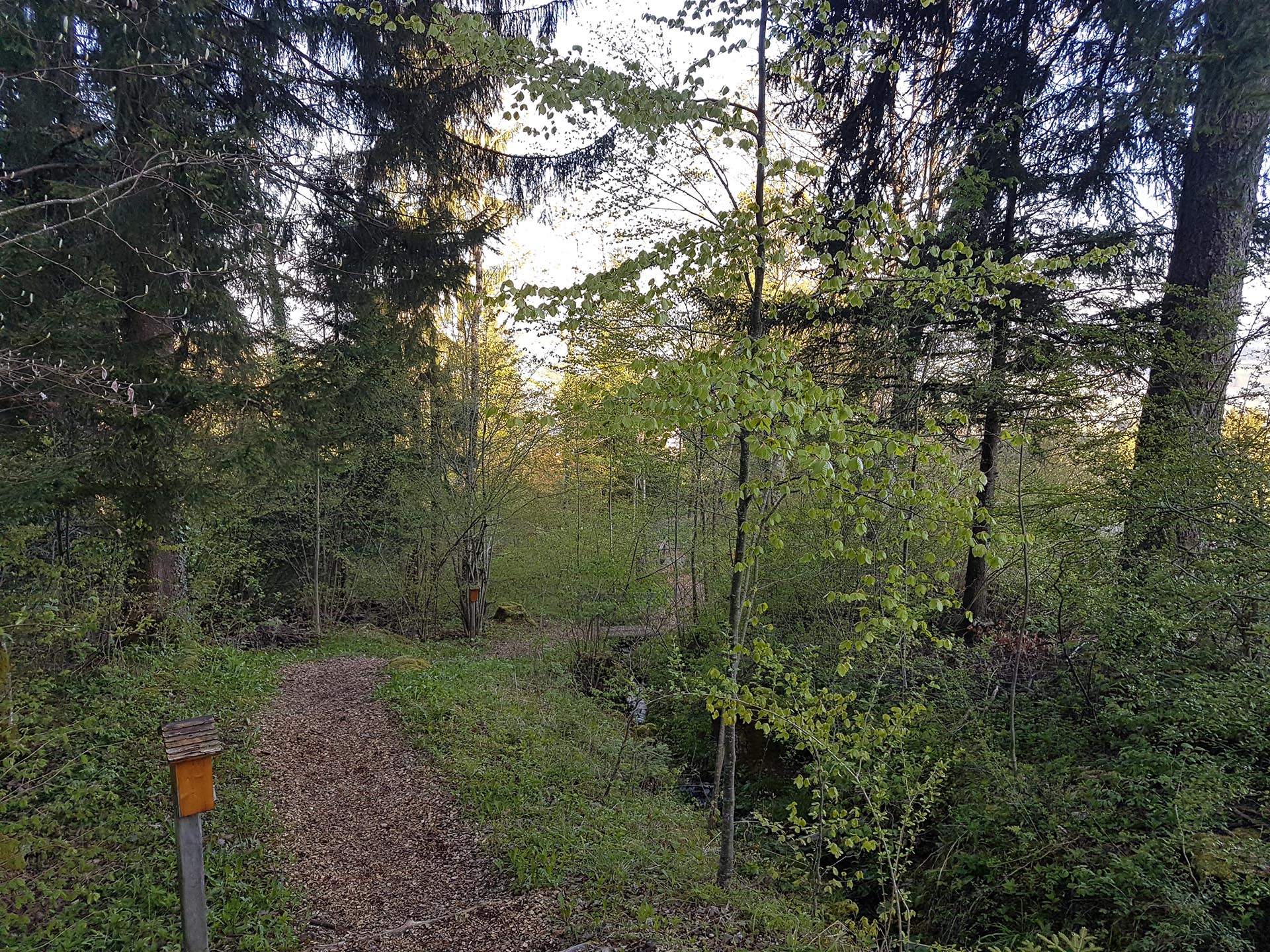 The ‘Traîna Manchou’ trail, located on the Niremont road in the hills above Semsales, starts on the right-hand side of the road.
