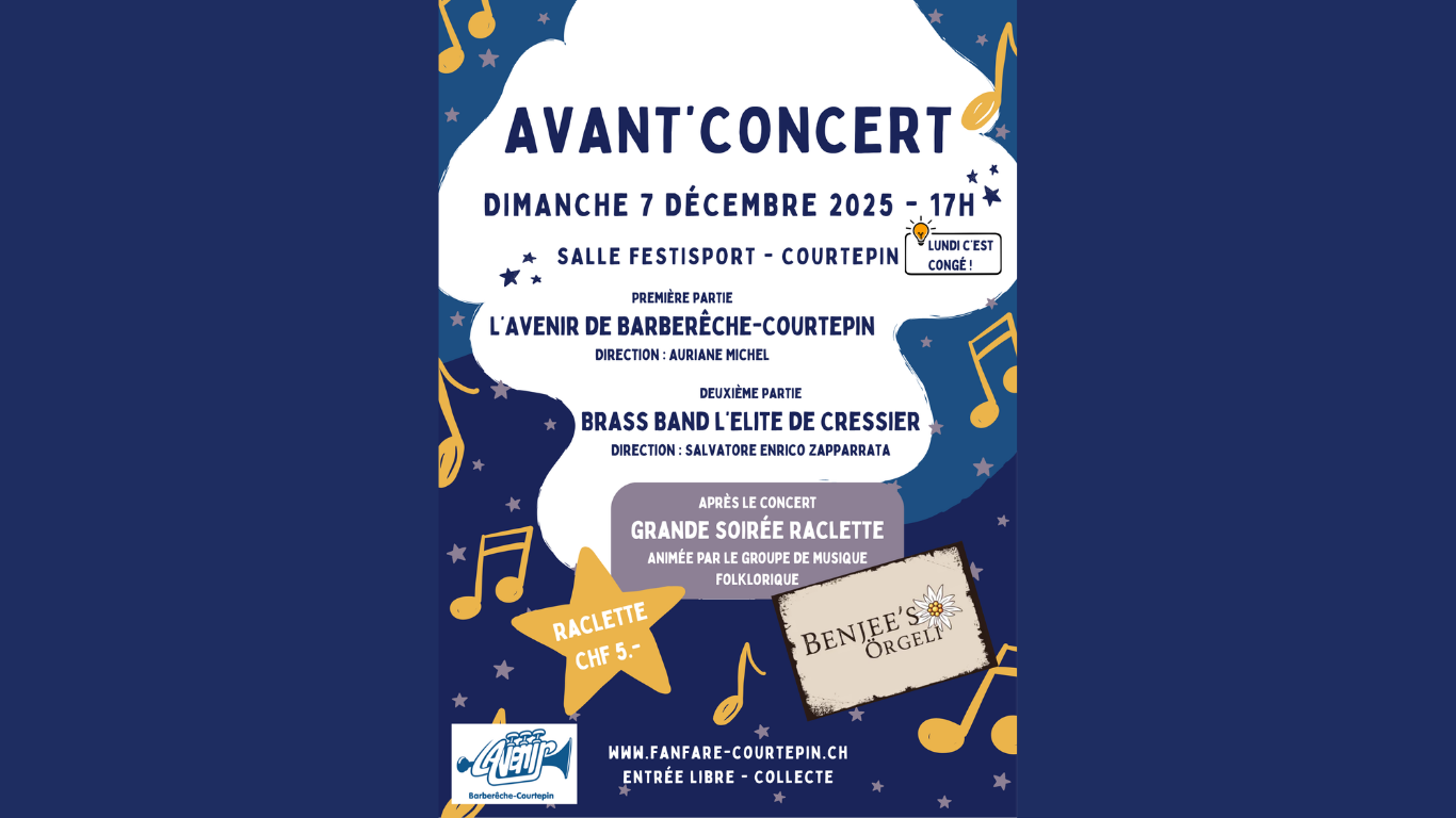 A concert featuring two brass bands from the canton of Fribourg: the Avenir de Barberêche-Courtepin and the Elite de Cressier.