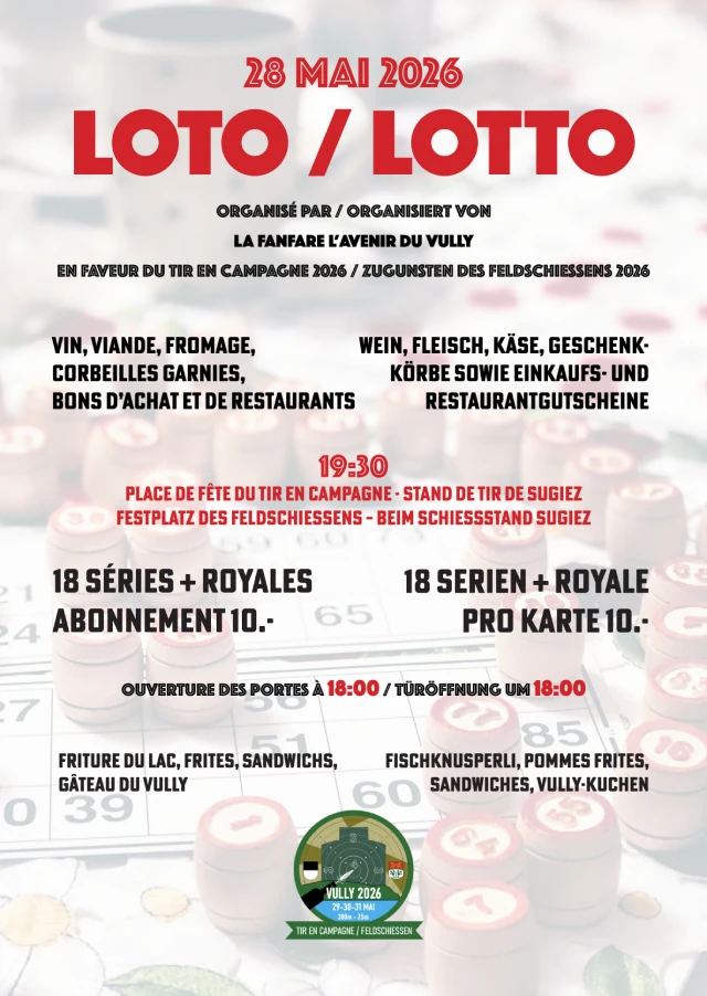 The Carabiniers du Vully shooting club, in collaboration with the Vully pistol shooting club for the 25 m and 50 m disciplines, is pleased to organize the “Swiss Federal Field Shooting” on May 29, 30, and 31, 2026.