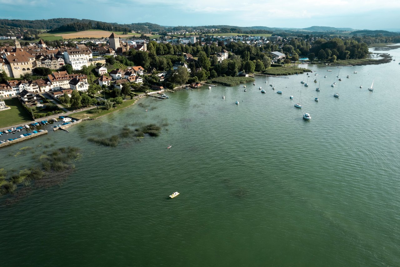 Right on the Murten harbour promenade, the Murtensee Sailing School offers a wide range of boats for rent. Pedalos, many with built-in slides, are perfect for relaxing outings on the lake. Motorboats and sporty sailboats are also available for more adventurous experiences on the water.