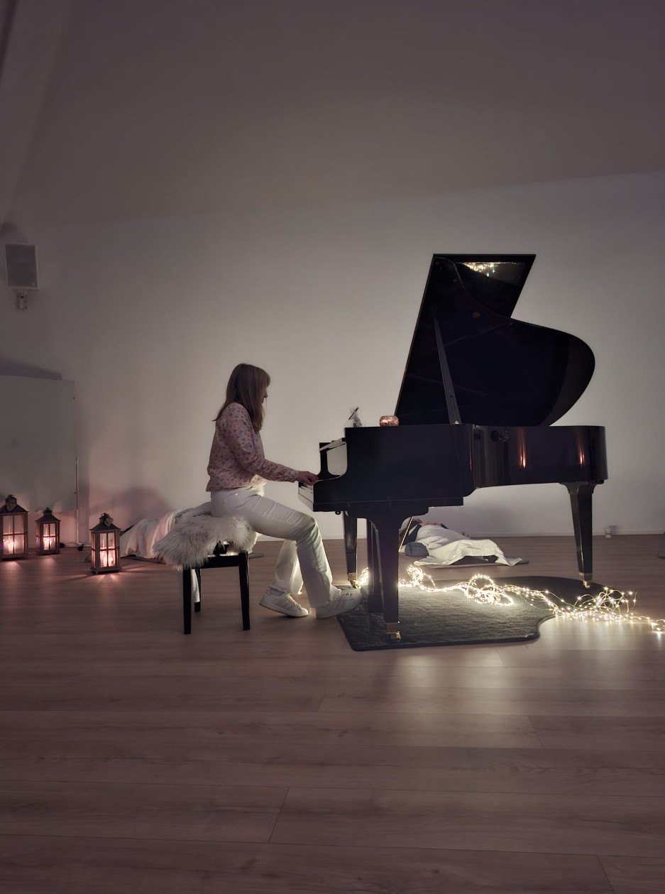 In the first part, intuitive pianist Michaela Binz performs free piano compositions inspired by consciously named themes, gently opening the inner space.