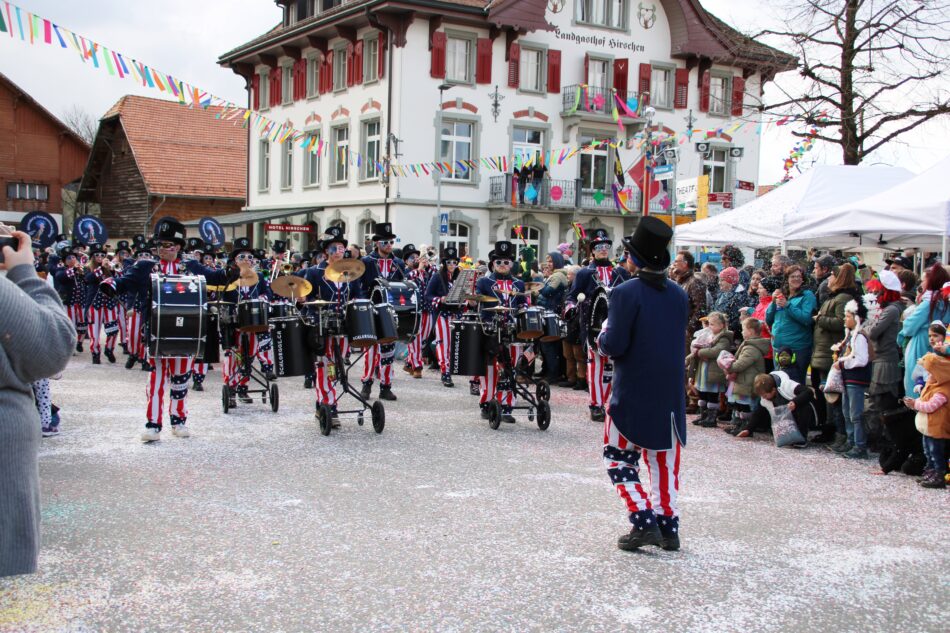 The carnival starts on Friday with a children's parade. On Friday and Saturday evening, various Guggenmusik bands play in the pubs and in the Schlorggehöhli. On Sunday, the carnival ends in the morning with the family carnival and in the afternoon with a parade and Guggenmusik serenades.