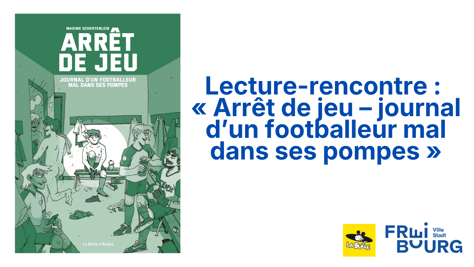 Et si le coup de sifflet final n’était pas la fin de l’histoire ? Avec « Arrêt de jeu », l'auteur suisse de BD Maxime Schertenleib transforme son parcours de footballeur en bande dessinée sensible et pleine d’autodérision. Entre rêves de terrain et renaissance créative, il raconte la vie comme un match plein de rebondissements ! Tout public, dès 14 ans. Dédicaces sur place, apéritif offert. Avec la librairie La Bulle.