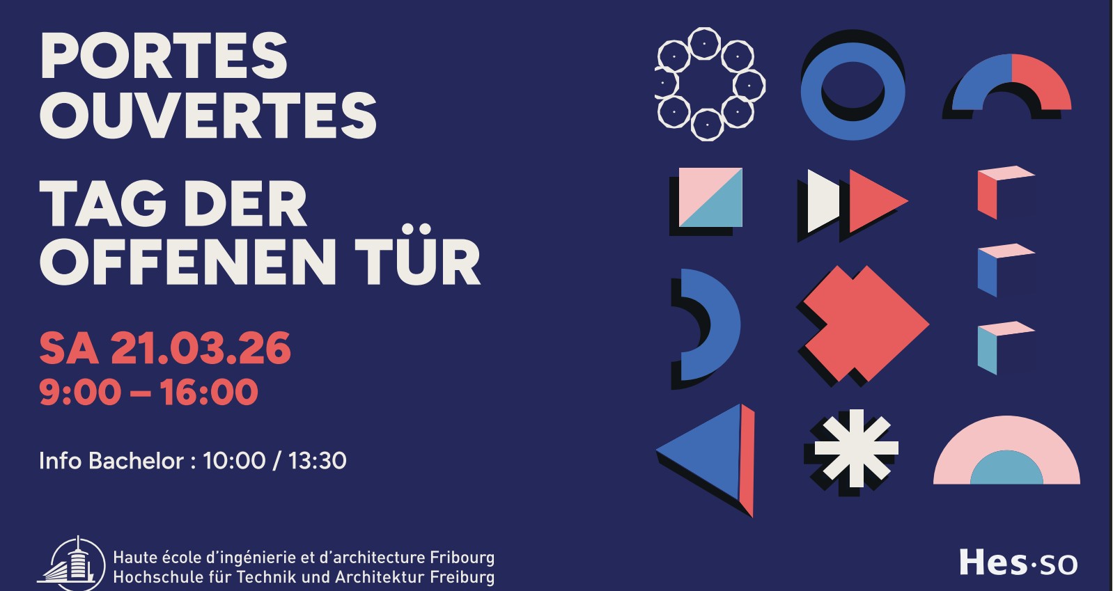 Lors de la journée Portes ouvertes, les six filières de la HEIA-FR (architecture, chimie, génie civil, génie électrique, génie mécanique, informatique et systèmes de communication) proposent des animations et visites pour petits et grands. Cette journée est une opportunité à ne pas manquer pour découvrir l’innovation technologique et la créativité.