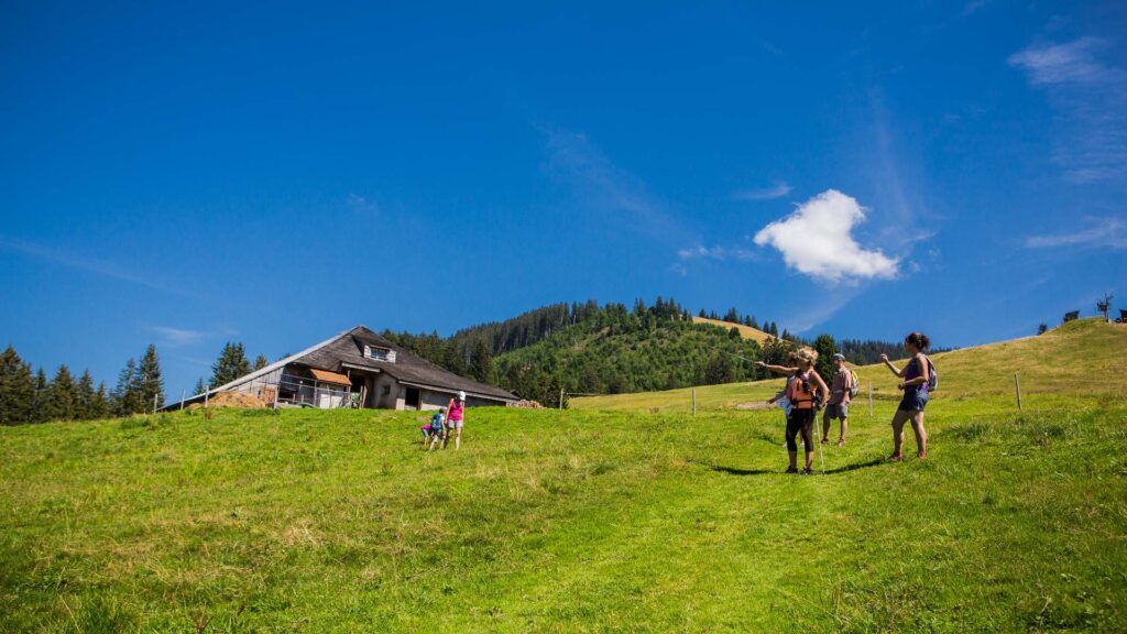 Ce sentier ludique et didactique plonge familles et enfants dans l’univers de l’armailli. Des panneaux retracent son histoire et des structures géantes comme le botte-cul, un bac à crème et une semelle de chaussure invitent au jeu. Une lunch box toute prête accompagne la balade, ajoutant une touche gourmande à cette randonnée mêlant nature, patrimoine et amusement, idéale pour éveiller la curiosité des plus jeunes.