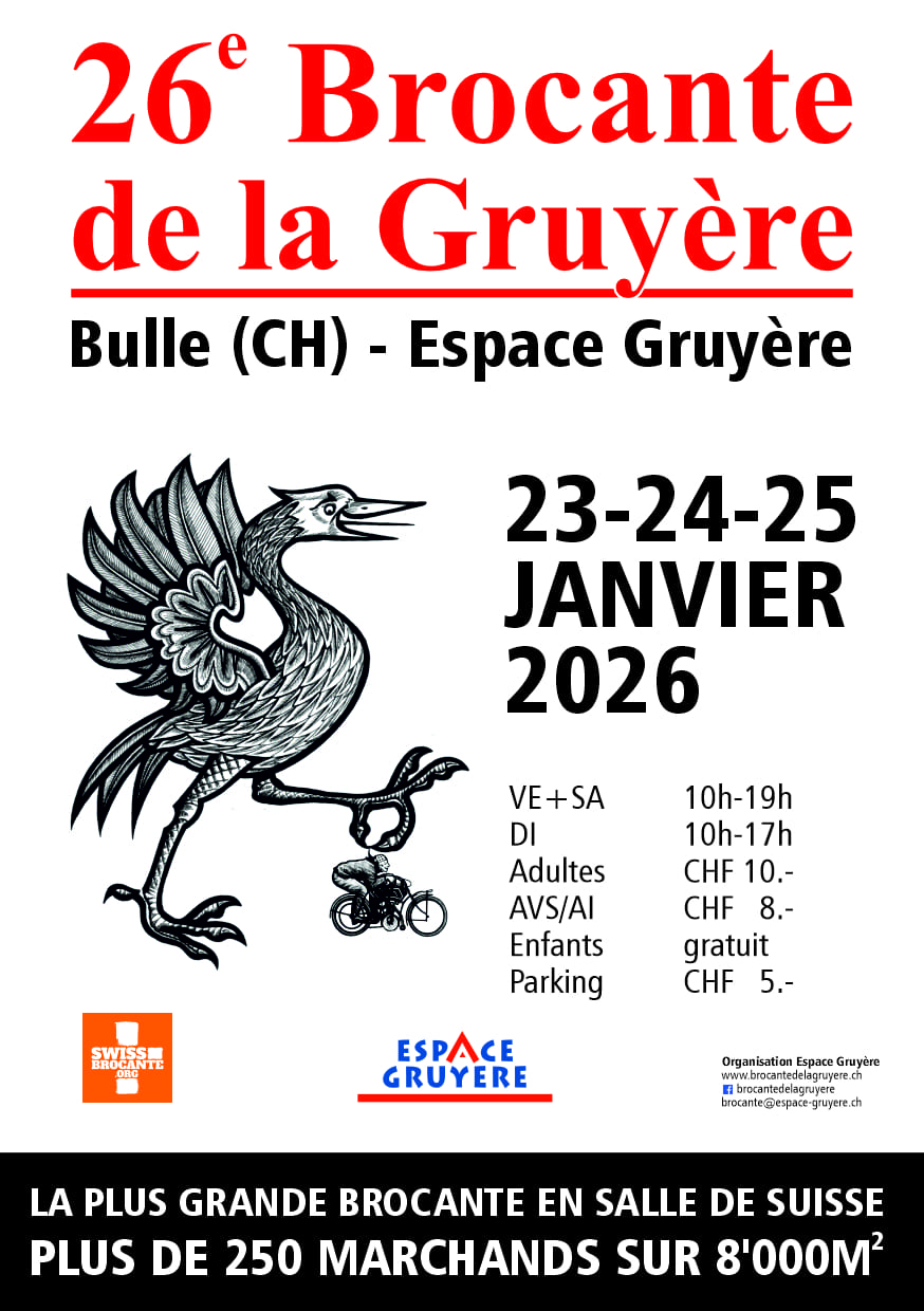 La Brocante de la Gruyère à Bulle propose des pièces uniques dans une ambiance exceptionnelle autour de 250 exposants, antiquaires et brocanteurs à Espace Gruyère.