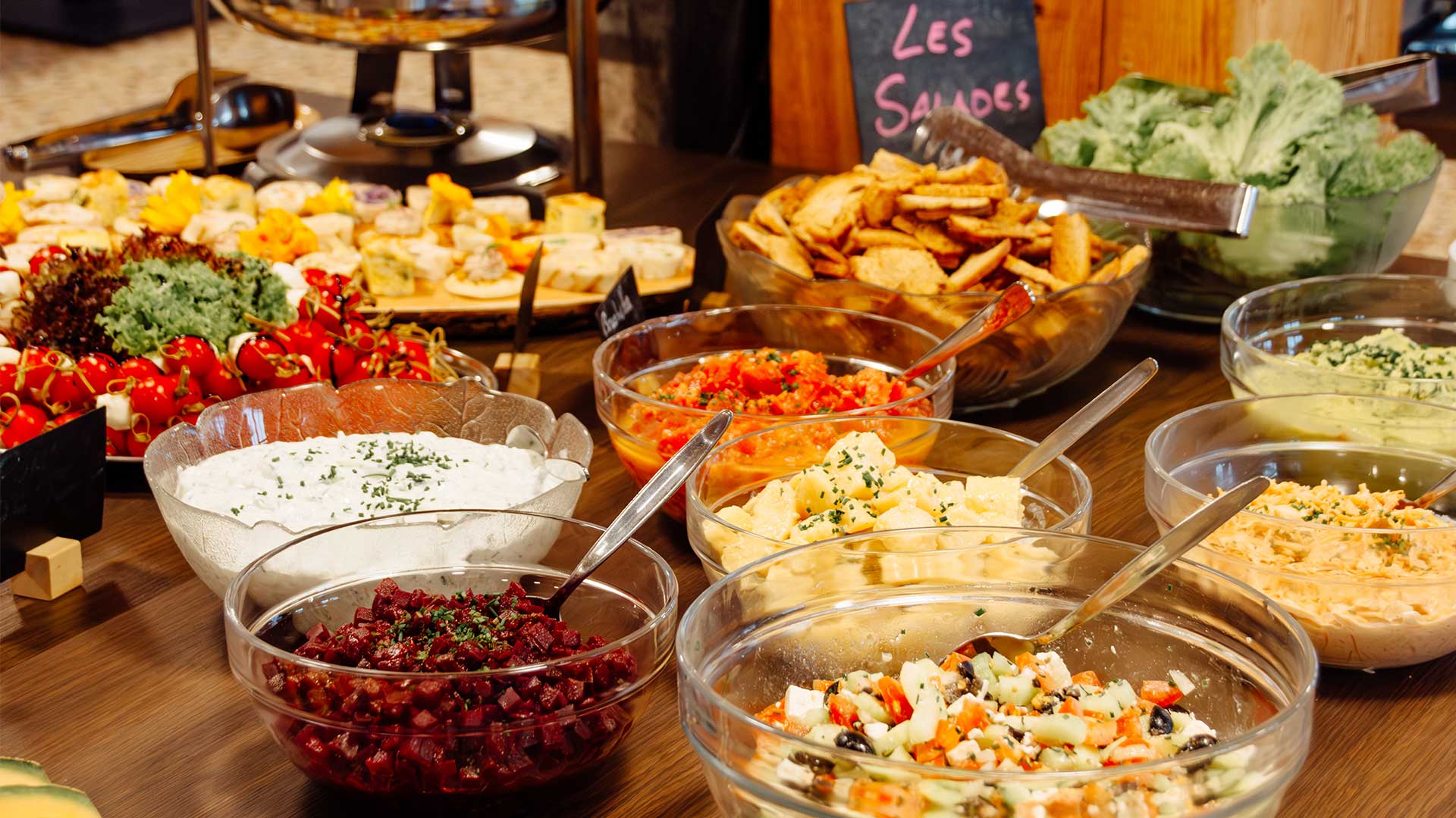 Au menu : jus de fruits, pains et viennoiseries, assortiment de viandes froides et de fromages de la région, salades variées, tartes salées, propositions du Chef chaudes et froides, d’ici et d’ailleurs…