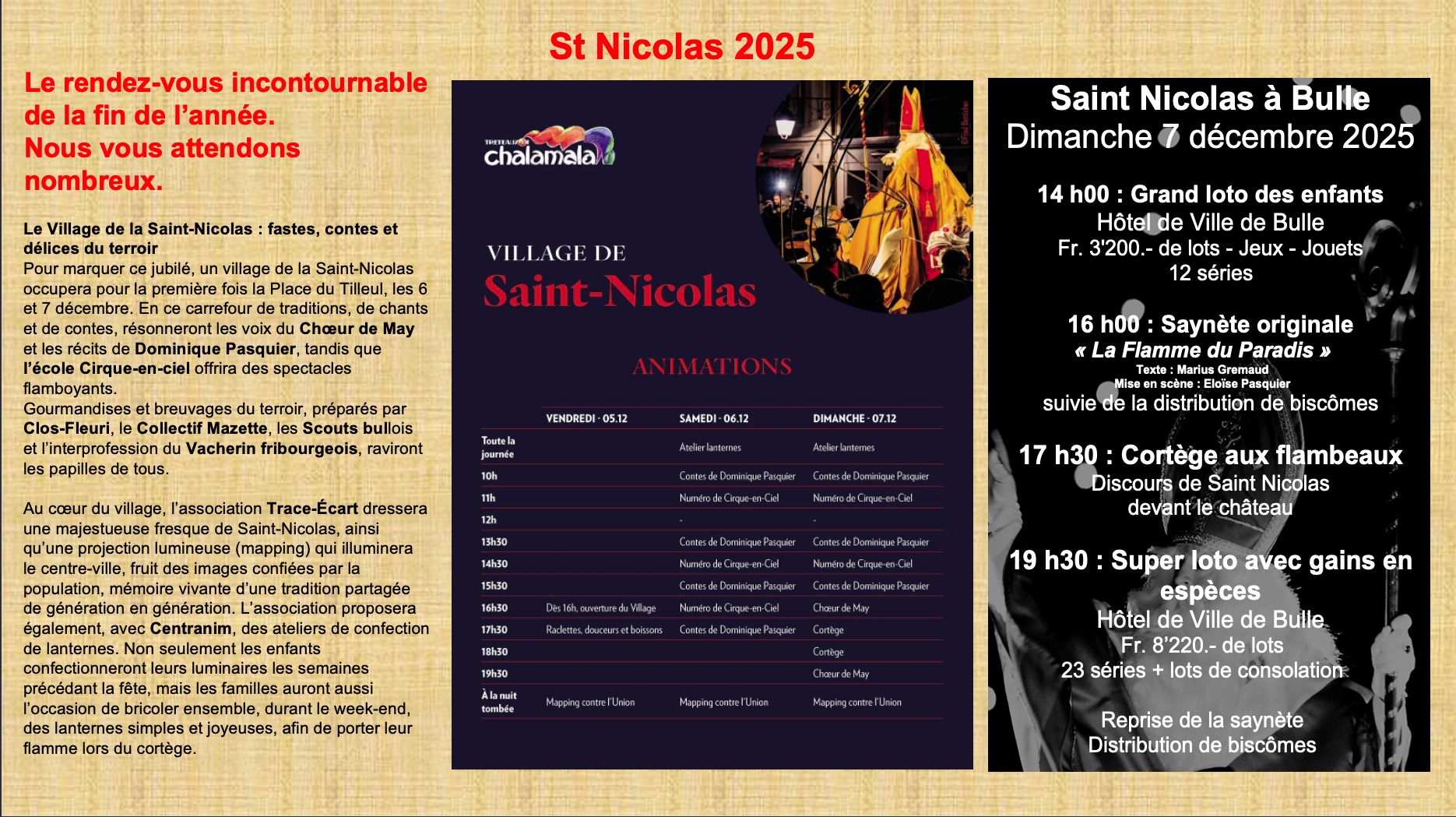 Visites dans les familles bulloises durant la période du 28 novembre au 7 décembre 2025. Inscriptions dès le 6 novembre au +41 (0)79 332 26 02.