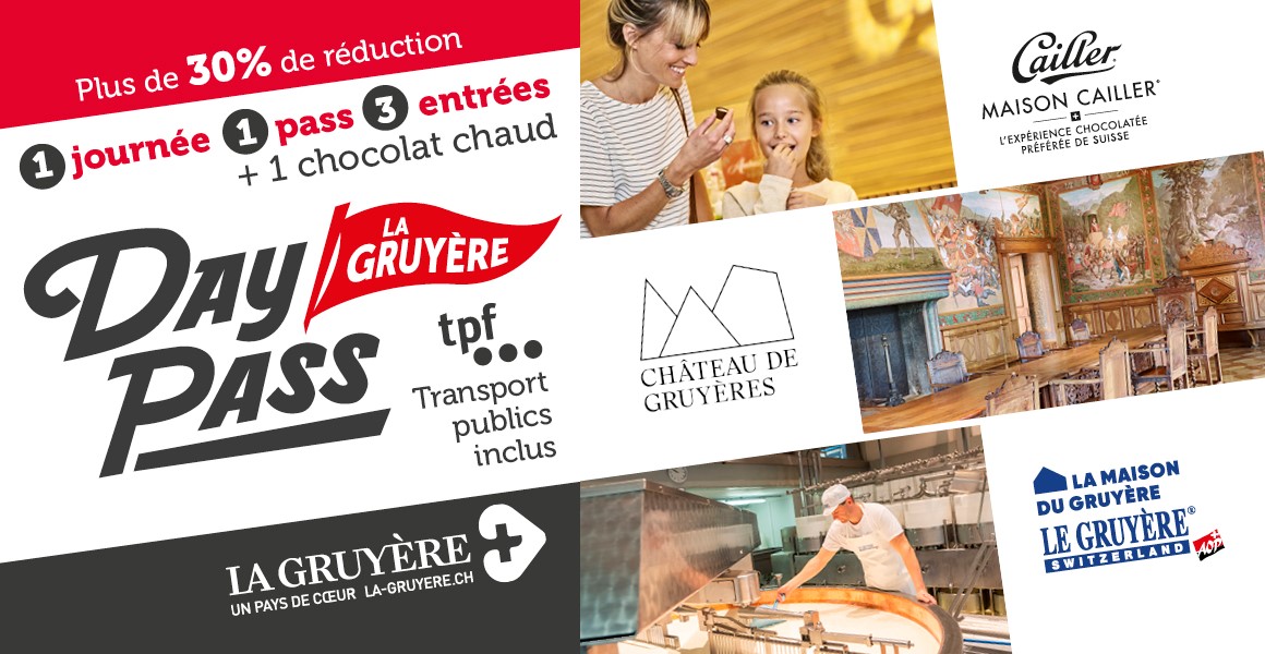 - *Nous vous recommandons de débuter votre journée par la visite de la Maison Cailler afin de bénéficier des places disponibles pour cette offre. Sur présentation du DayPass, un créneau horaire pour la visite vous sera attribué. Une attente est possible pour une visite en dehors de ces horaires.
