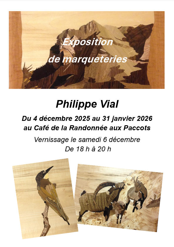 Découvrez les œuvres de marqueterie de Philippe Vial, actuellement exposées au Café La Randonnée.