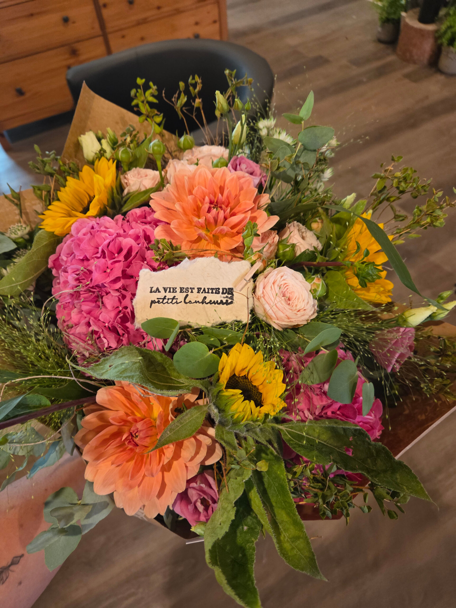 AU COEUR DES FLEURS est un espace floral où la création sur commande est reine. Dans une ambiance douce et accueillante, vous pouvez savourer un thé ou un café au milieu des fleurs, le temps que votre arrangement prenne vie, ou simplement venir échanger durant les heures d’ouverture.