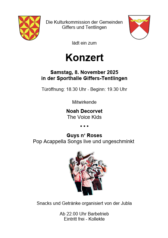 Vous êtes cordialement invités au concert organisé par la commission culturelle de Giffers & Tentlingen.