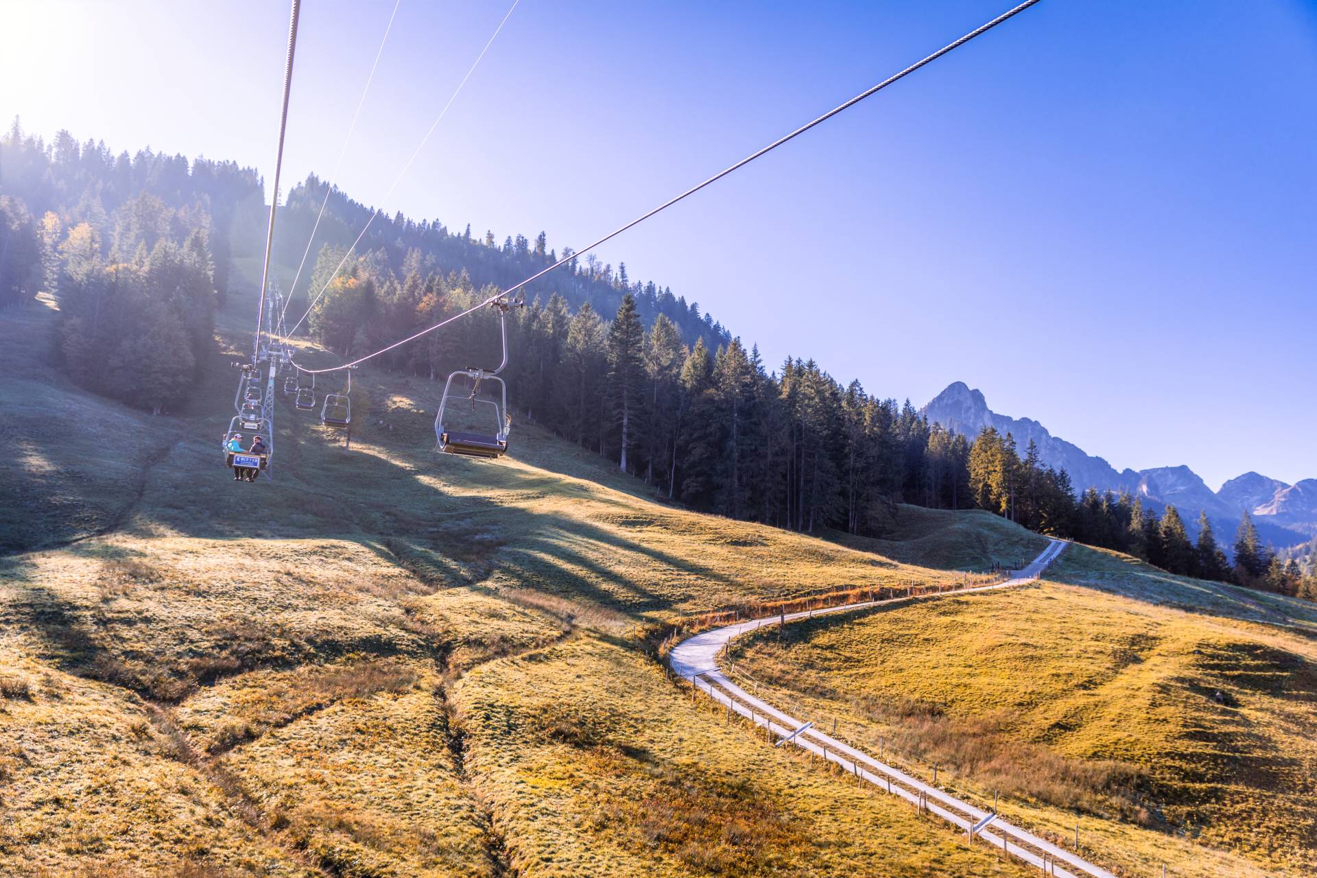Le confortable télésiège débrayable à 2 places, vous amène à la Riggisalp au milieu de son panorama de rêve. Point de départ pour le sentier panoramique, diverses randonnées en montagne et tours en VTT. Restauration dans des chalets d’alpage convivials.